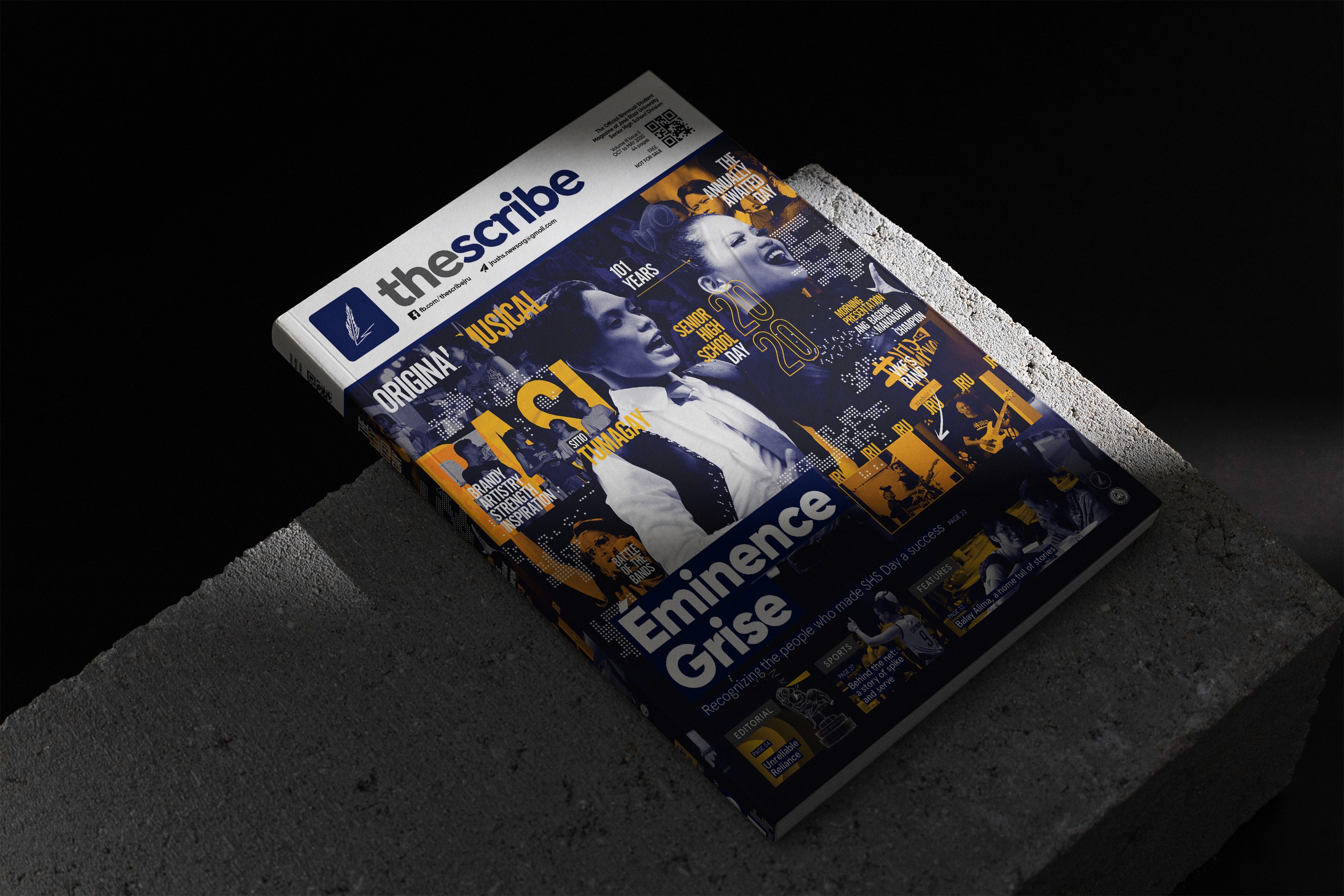Adaptation in Action: As seen in the collection of covers above, the "thescribe" masthead and accompanying design elements change color to harmonize with the photography or illustration, creating a cohesive and impactful visual experience for each edition.